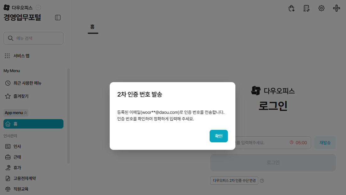 - 모바일과 PC메신저를 포함한 다우오피스 플랫폼 로그인 시 2차 인증 적용