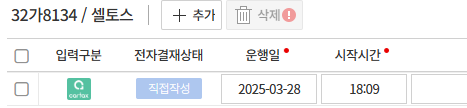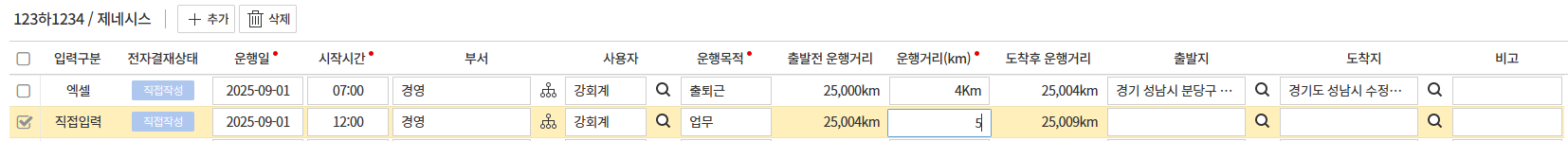 • [➕추가] : 선택한 차량의 운행일지 직접 등록