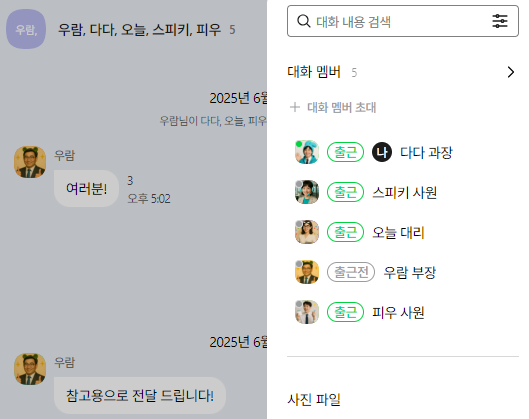 - 부서장/부부서장: 부서원의 예정 및 만료 예정 휴가 7일 전 알림 발송