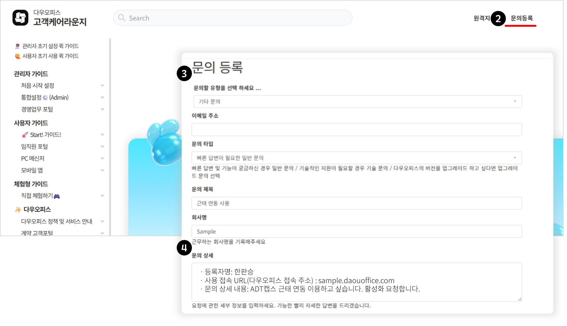 - 관리자 권한으로 로그인 후 고객케어라운지 접속