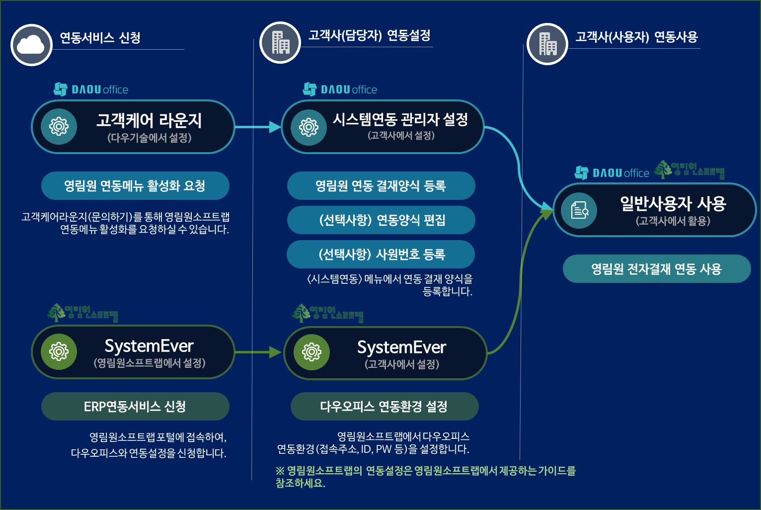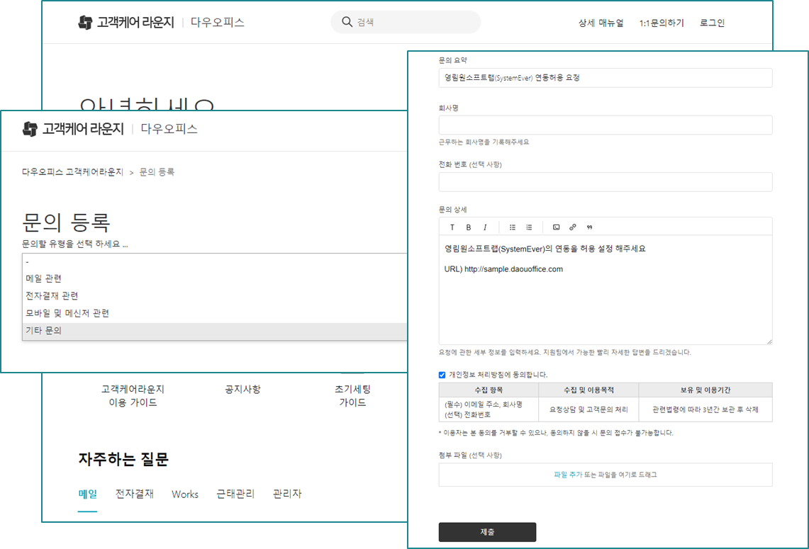 다우오피스와 영림원소프트랩(SystemEver) ERP 연동을 위해서는 먼저 고객케어라운지 문의등록을 통해