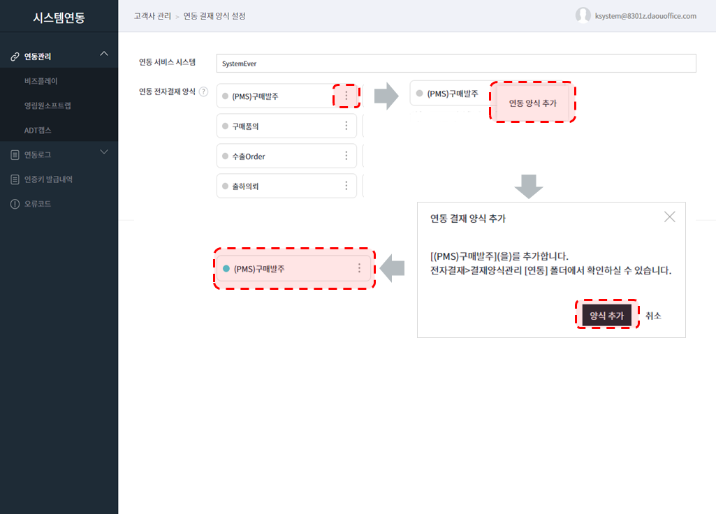 아래 안내에 따라 순서대로 전자결재 연동양식을 편집해보세요