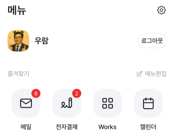 - 설치된 다우오피스 앱 터치하여 모바일 앱 실행