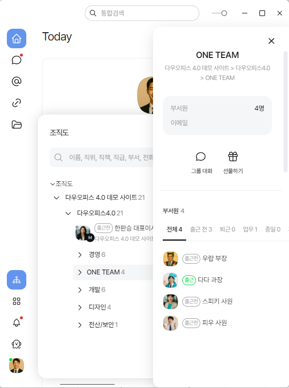🏢 조직도 : 조직 구조를 한눈에 확인하고, 클릭 한 번으로 대화 시작