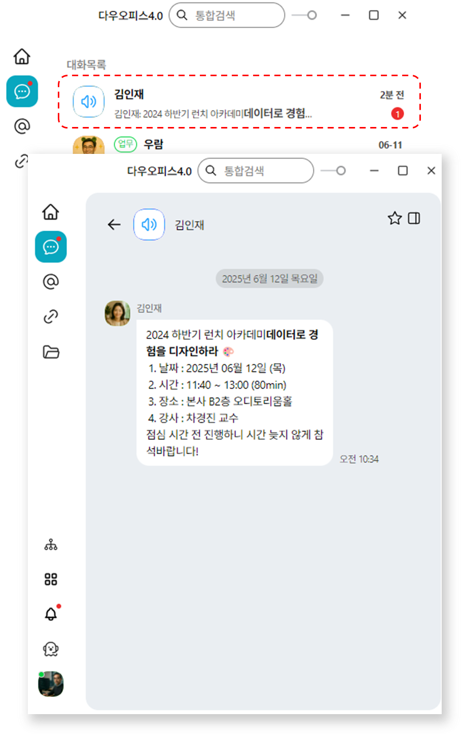 - 공지 수신자는 일반 메시지처럼 대화 목록에 공지톡 도착