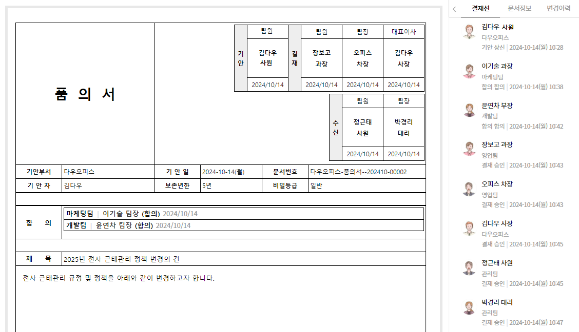 이를 통해 부서 간 협업을 효율적으로 관리하고, 문서의 흐름을 체계적으로 정리할 수 있습니다.