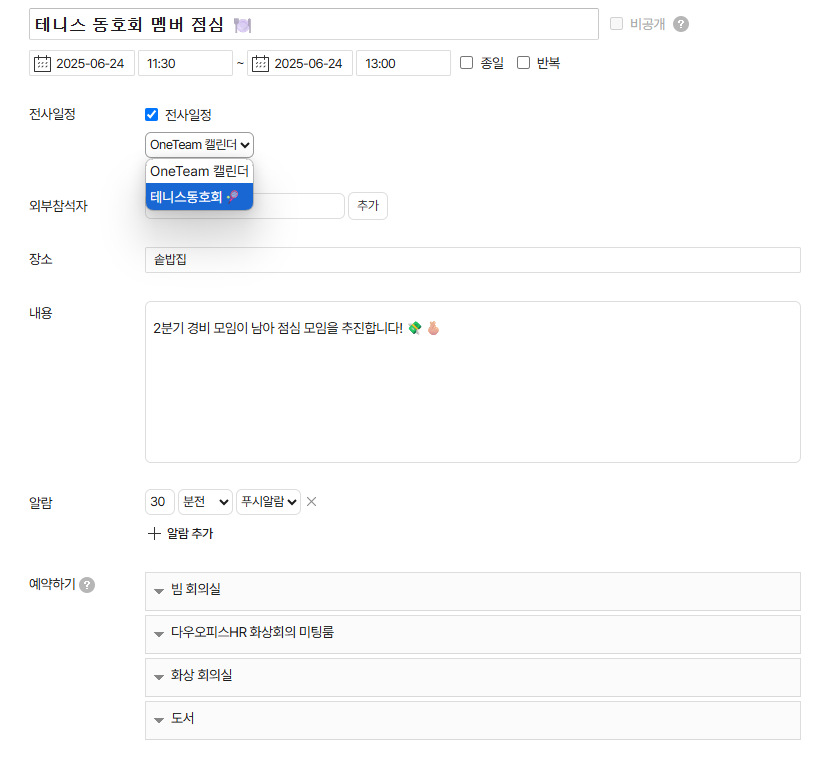 - 일정명 및 일시 등 필요 내용 입력