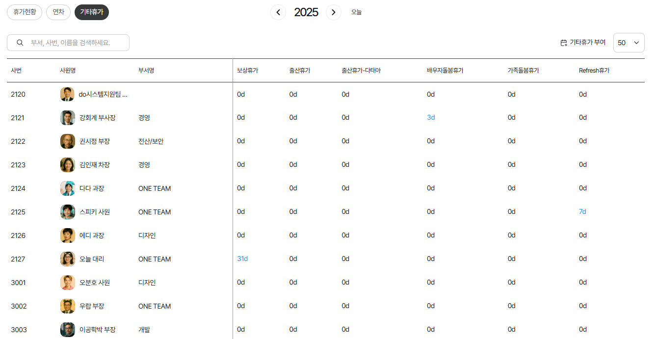 1️⃣ 부서 기타휴가